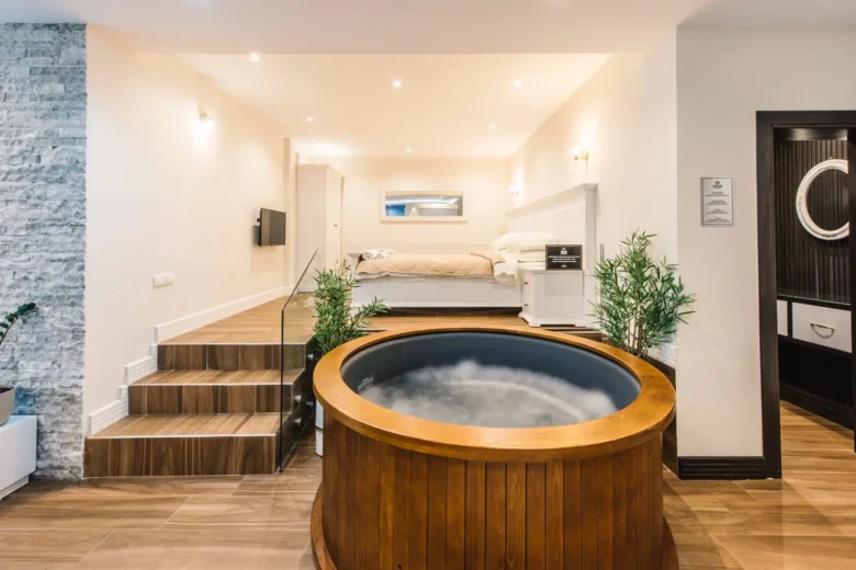 Guests will have a special experience as this double room provides a pool with a view, a hot tub and a spa bath. The spacious double room offers air conditioning, a private entrance, a terrace with sea views as well as a private bathroom boasting a walk-in shower.